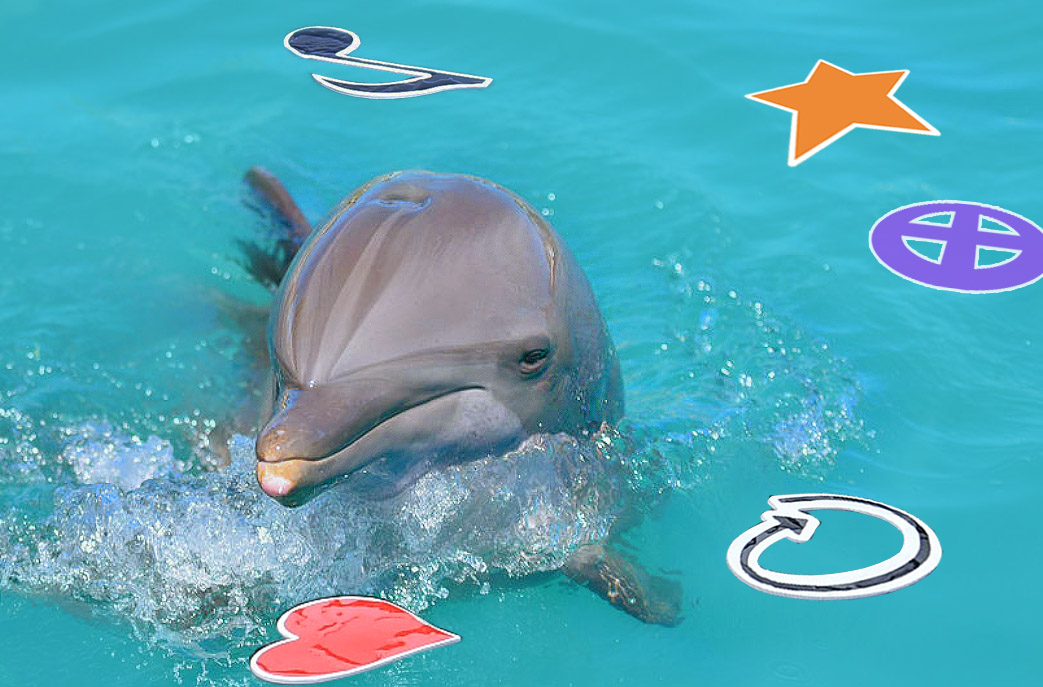 Interact with the dolphins using a unique communication game – You'll have fun interacting with the dolphins in our specialized evolving enrichment program and two-way communication game, the Dolphin Emoji Game, designed to ultimately allow the dolphins to direct their own daily activities. Through your participation, you'll help make this communication goal possible. You'll be learning the game right along with the dolphins. Teamwork in action! This program is available for both in-water sessions and keep-you-dry poolside sessions.